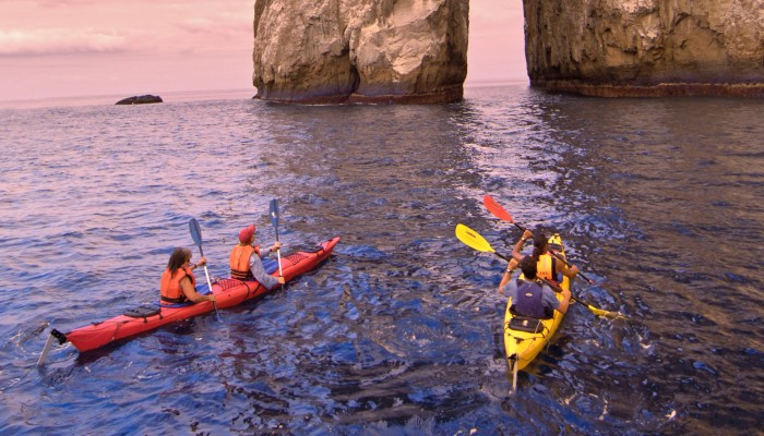 Galápagos multisport journeys like our Galapagos Unbound Tour are designed for travelers who want to explore the islands actively and up-close. You’ll be kayaking its turquoise waters, hiking through volcanic landscapes, snorkeling alongside unique marine life, and even camping on remote beaches.